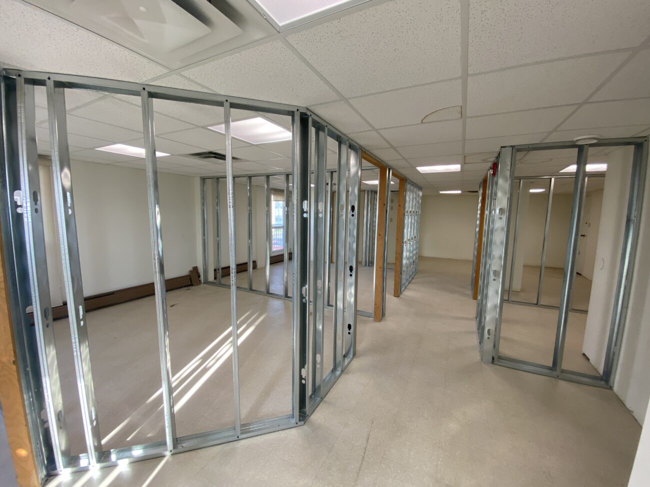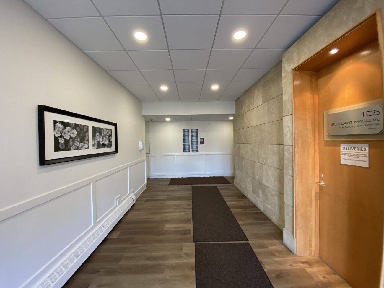 Unit 301 (817sf): Reception area, (3) offices (one with sink), renovated washroom