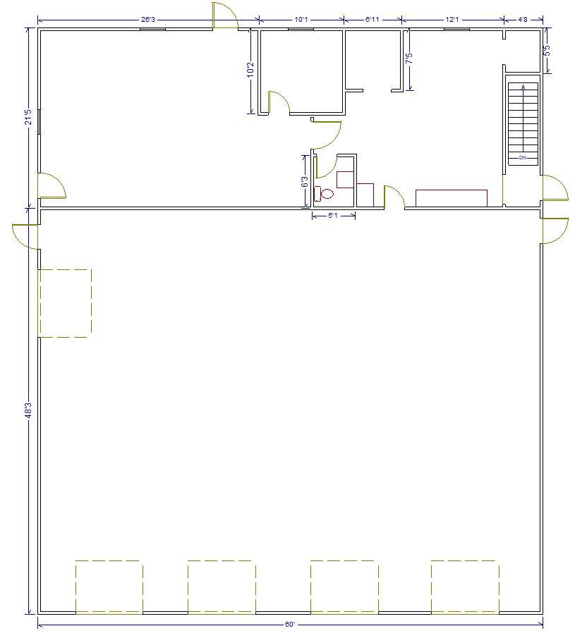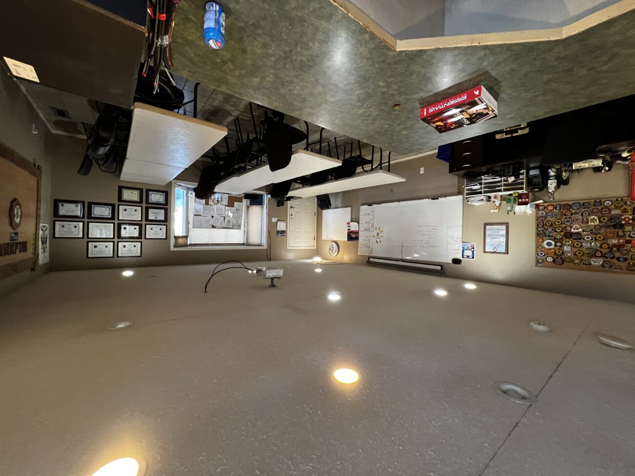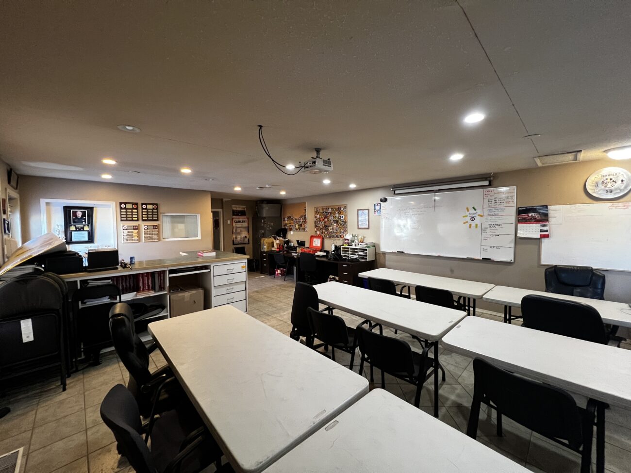 Warehouse: Approximately 15' ceilings | (4) 12'x14' OHD + (1) 8'x10' OHD | Radiant heat | Exhaust fan | Emergency power generator | Trench + 2 compartment sump